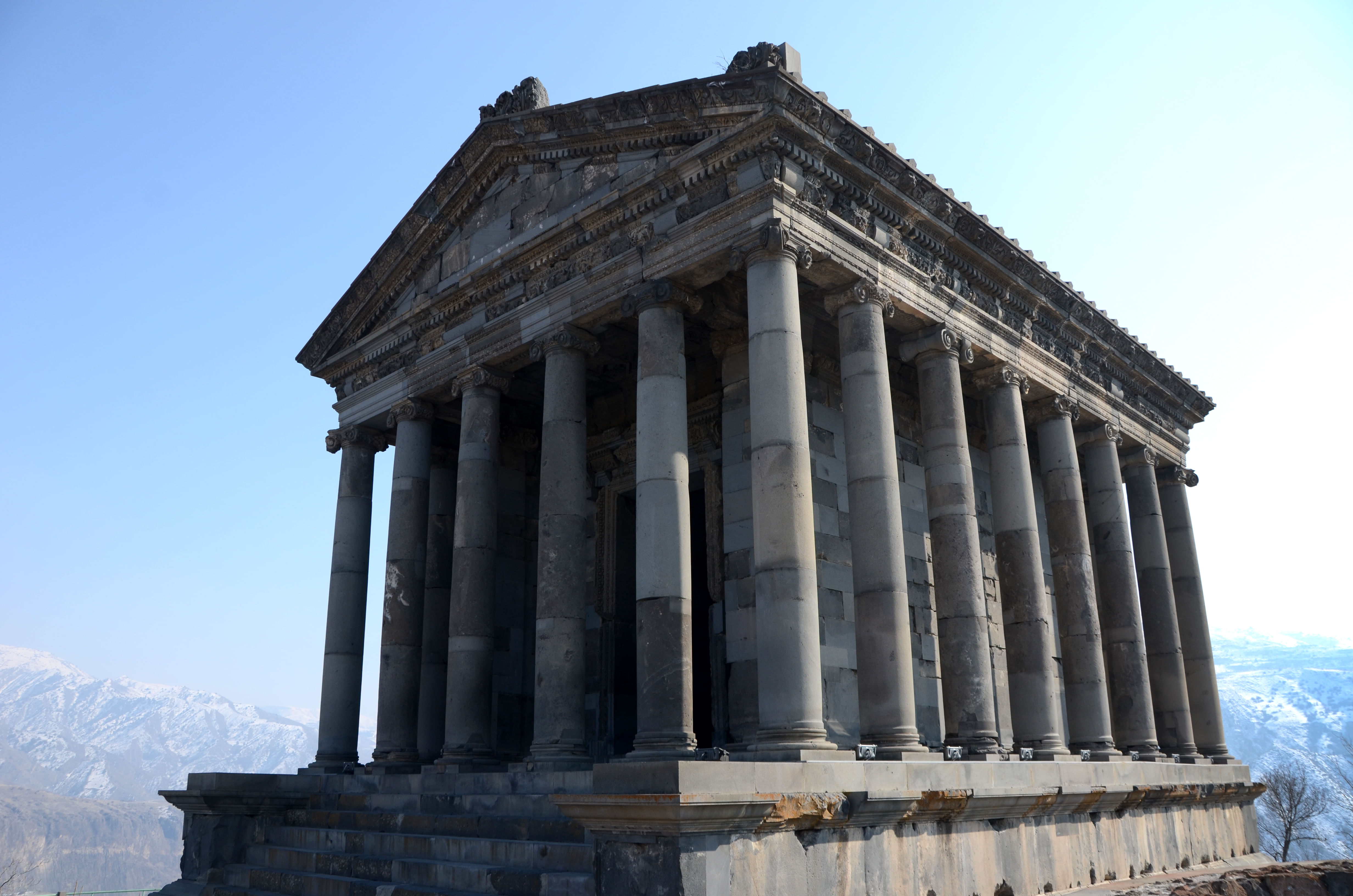 The first stop is the 1st-century Pagan Temple of Garni, the only one in the CIS. This magnificent temple, once the summer residence for four Armenian royal dynasties, was built by King Tiridates I and dedicated to Mithra, the god of sun and justice. The site also has ruins of a palace, a Christian church, and Roman baths with mosaics.