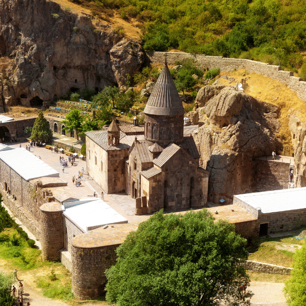 Next, we visit the cliffside Geghard Monastery in the scenic gorge of the Azat River. Dating back to the 13th-14th centuries, this revered site features rock-carved churches, tombs, and a healing spring. Saint Gregory the Illuminator, the founder of the Armenian Church, also spent time here.